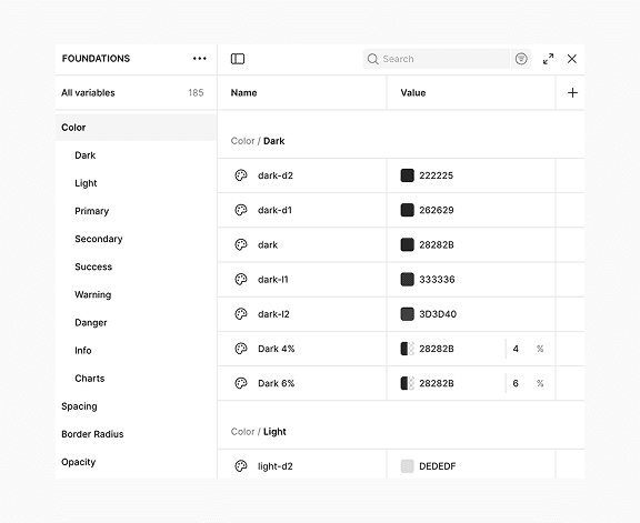 The number of variants was reduced by approximately 50%, and file sizes were drastically decreased. Table components are now much less detached and more scalable. Button variants, thanks to the use of variables and properties, were reduced from over 1,000 to around 150.